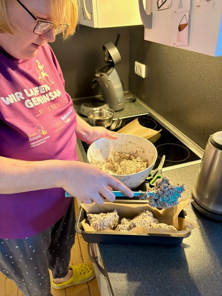 Im Rhönhof wird seit einiger Zeit der wichtigste Bestandteil einer ordentlichen Brotzeit selbst hergestellt: Die liebe Nina hat es sich zur Aufgabe gemacht, leckeres Eiweißbrot selber zu backen. Gesunde Ernährung wird in der Wohngruppe großgeschrieben!