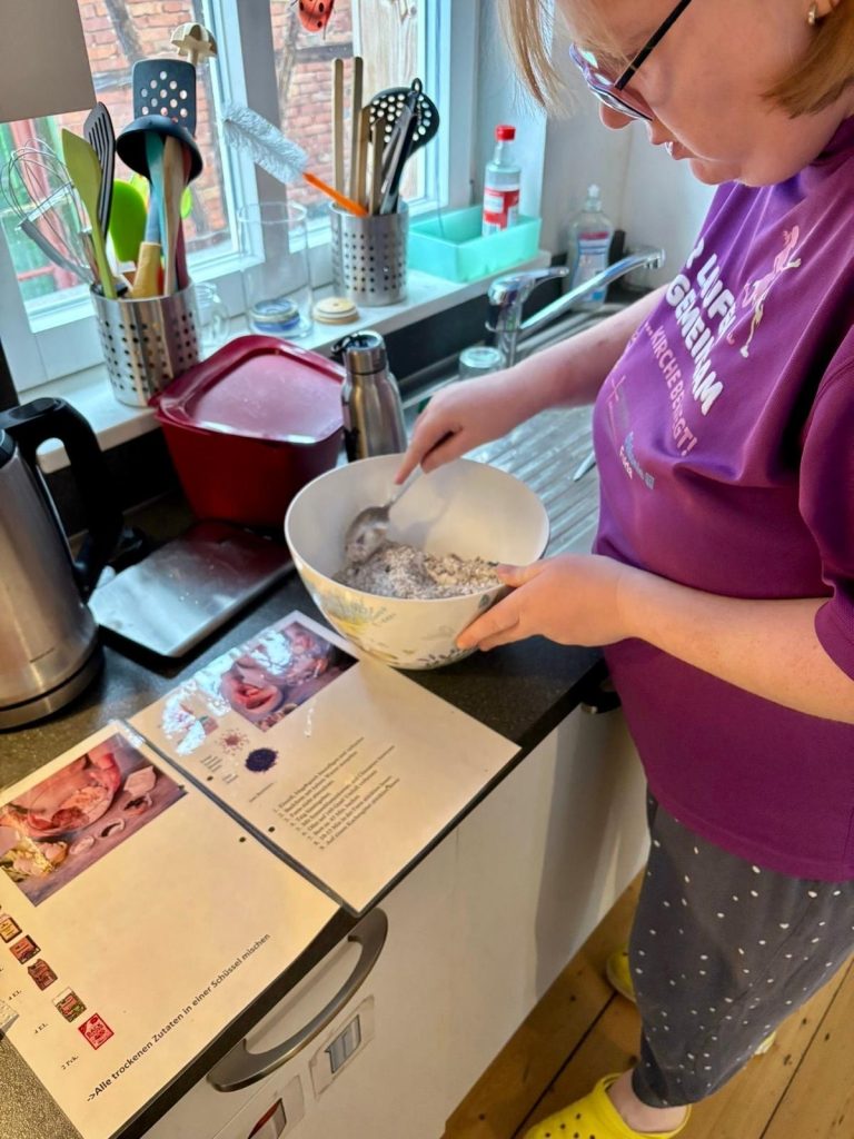Dank eines visualisierten Rezepts können die einzelnen Schritte von ihr selbstständig umgesetzt werden. Mittlerweile Hat Nina nicht nur den Dreh raus, sondern auch richtig Freude am Brotbacken gefunden. Die langsam entwickelte Routine und das tolle Ergebnis stärkt ihr Selbstvertrauen. Und das jedes Mal aufs Neue!