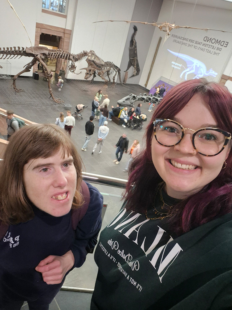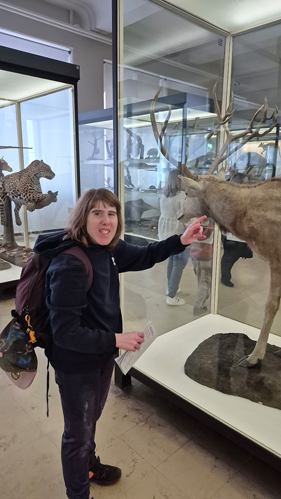 Klientin Julia begab sich vor Kurzem in Begleitung von Mitarbeiterin Laura-Marie auf den Weg zu einem Wochenendausflug nach Frankfurt am Main. Als Ziel steuerten sie das Senckenberg Naturmuseum an. Schon während der Fahrt ab Gersfeld war Julias Vorfreude deutlich spürbar: Neugierig stellte sie viele Fragen zum Tagesablauf und freute sich besonders darauf, dass sowohl Kaffee und Kuchen als auch das Abendessen diesmal auswärts stattfinden würden.