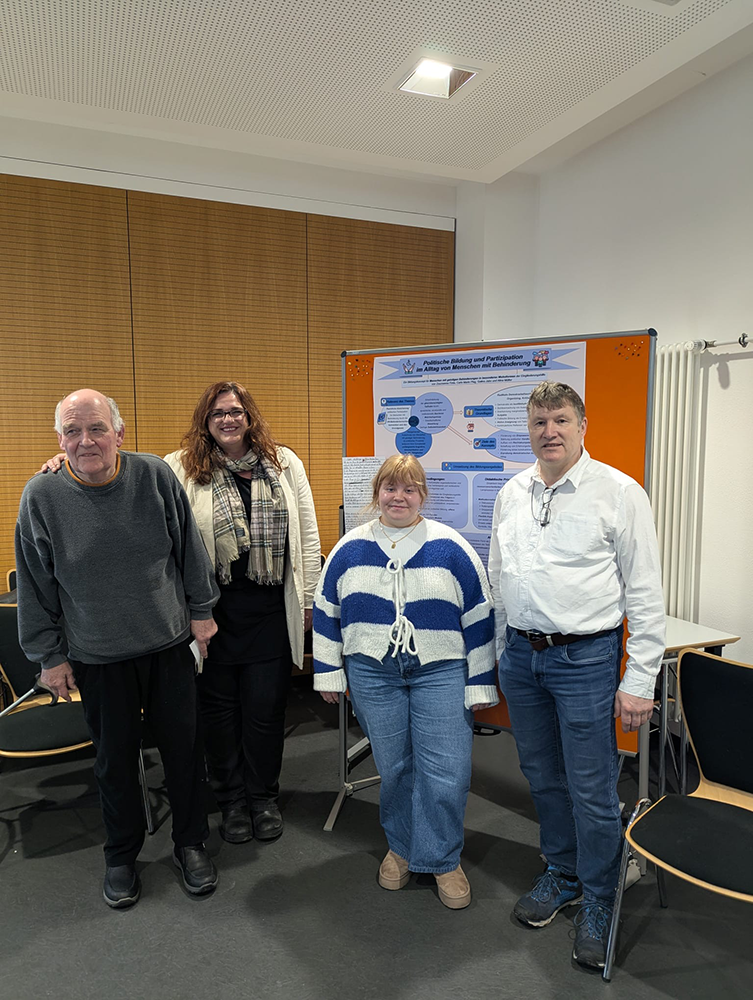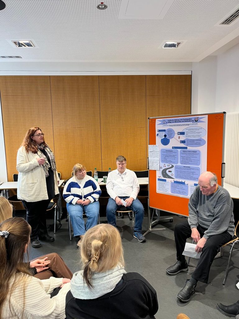 Unsere beiden Studierenden Carla und Szusanna haben im Rahmen ihres Studiums an der Hochschule Fulda das Thema „Politische Bildung und Partizipation im Alltag von Menschen mit Behinderung“ bearbeitet. Als Prüfungsleistung gestalteten sie ein Poster, welches die beiden Mitte Februar vor ihren Kommilitonen präsentierten.
