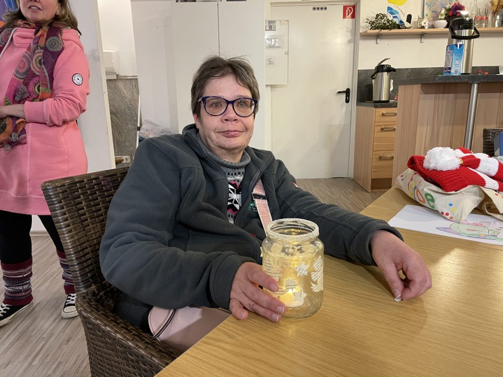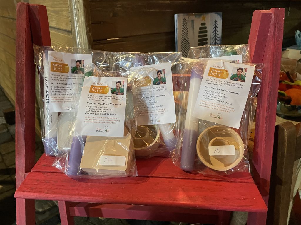 Unser Verkauf mit handgemachten Produkten unserer Klient*innen war dabei ein ebenso beliebter Anlaufpunkt wie unsere Begegnungsstätte „Kunst & Café“. Drinnen wurde es richtig gemütlich: An einem großen Tisch wärmten sich Gäste bei einem Kaffee auf, kamen ins Gespräch und tauschten sich aus. Ganz selbstverständlich, obwohl man sich vorher gar nicht kannte.
