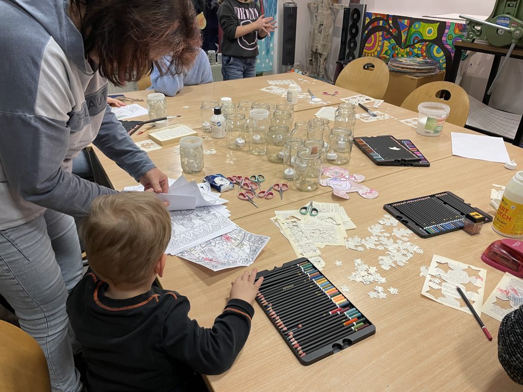 Als Station des Lebendigen Adventskalenders wurde außerdem fleißig gemalt und gebastelt. Die Kinder und auch einige große Bastelfreunde gestalteten mit viel Freude wunderschöne Windlichter, die in den nächsten Tagen für warmes Licht sorgen.