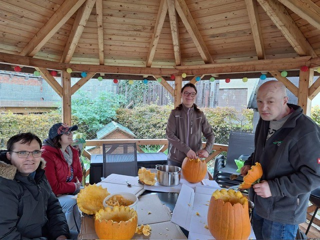 Auf dieses herbstliche Highlight hatten sich die Klient*innen schon lange gefreut! Also hieß es: Werkzeuge raus und los ging’s ans Schnitzen. Entstanden sind kreative, lustige und auch herrlich gruselige Kürbisgesichter.