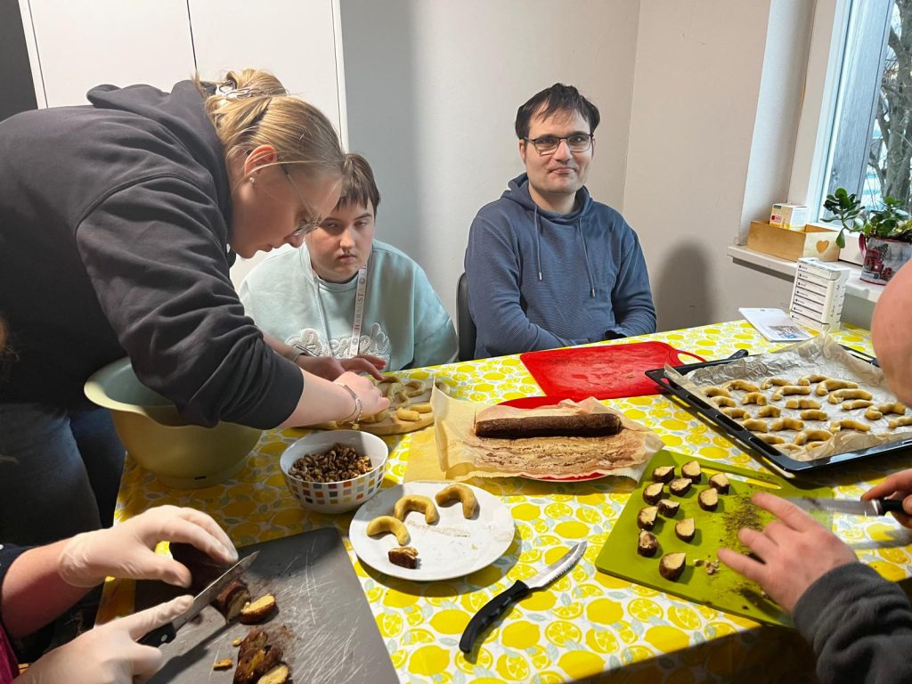 Die ersten Weihnachtsplätzchen wurden im Rhönhof bereits Mitte November gebacken. Die Klient*innen des Rhönhofs sind sich einig: Ein „zu früh“ gibt es bei den süßen Leckereien nicht! Mit viel Freude und guter Laune entstanden mehrere gut gefüllte Dosen, die gerecht unter allen Plätzchenbäcker*innen aufgeteilt wurden.