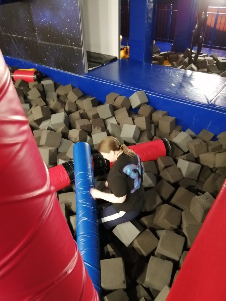 Unsere Klientinnen Lotta und Natascha haben gemeinsam mit unserem Mitarbeitenden Darius den Trampolinpark in der Nähe von Fulda erkundet.