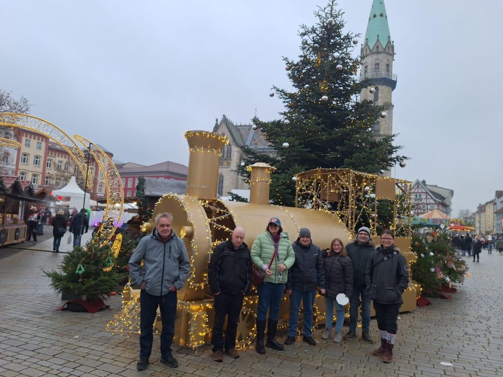Schon bei der Ankunft wurde die Gruppe von der festlich geschmückten Innenstadt empfangen und vom weihnachtlichen Flair des Meininger Weihnachtsmarkts verzaubert. Zwischen liebevoll dekorierten Ständen, funkelnden Lichtern und dem Duft von Glühwein und gebrannten Mandeln bot sich reichlich Gelegenheit für Weihnachtseinkäufe. Von handgefertigten Geschenken über regionale Spezialitäten bis hin zu kleinen Überraschungen für die Adventszeit. Da war für jeden etwas dabei.