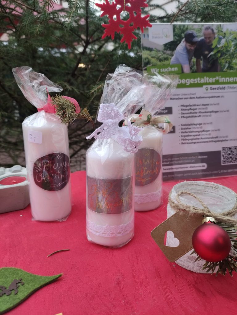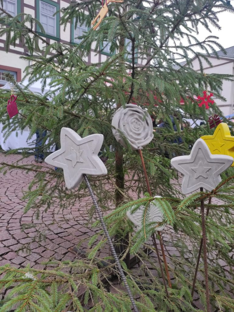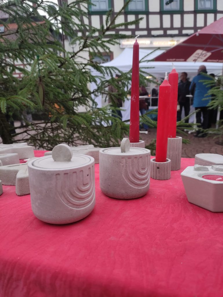 Bereits zum 17. Mal in Folge nahm die Lebensbrücke traditionell am Gersfelder Weihnachtsmarkt teil und ist damit zu einem festen Bestandteil des alljährlichen Geschehens geworden. An unserem Stand wurden – mittlerweile schon fast altbekannt – selbst hergestellte Produkte unserer Klient*innen angeboten. Das Sortiment reichte von liebevoll gestalteten Arbeiten aus Papier, Filz und Holz bis hin zu Dekoartikeln aus Beton, die seit einiger Zeit ebenfalls fester Bestandteil unseres Angebots sind.